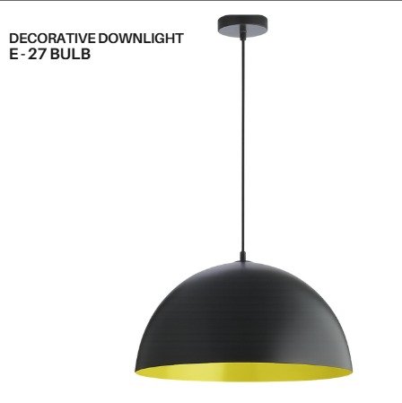 This Decorative Downlight Pendant Lamp features a bold black exterior paired with a vibrant yellow inner finish, creating a striking contrast that adds a modern, stylish touch to any space. Designed to accommodate an E27 bulb, it delivers focused, downward illumination—perfect for dining areas, kitchen counters, cafes, or lounge spaces. Easy to install and versatile in use, it enhances ambiance while serving as a standout decor piece.